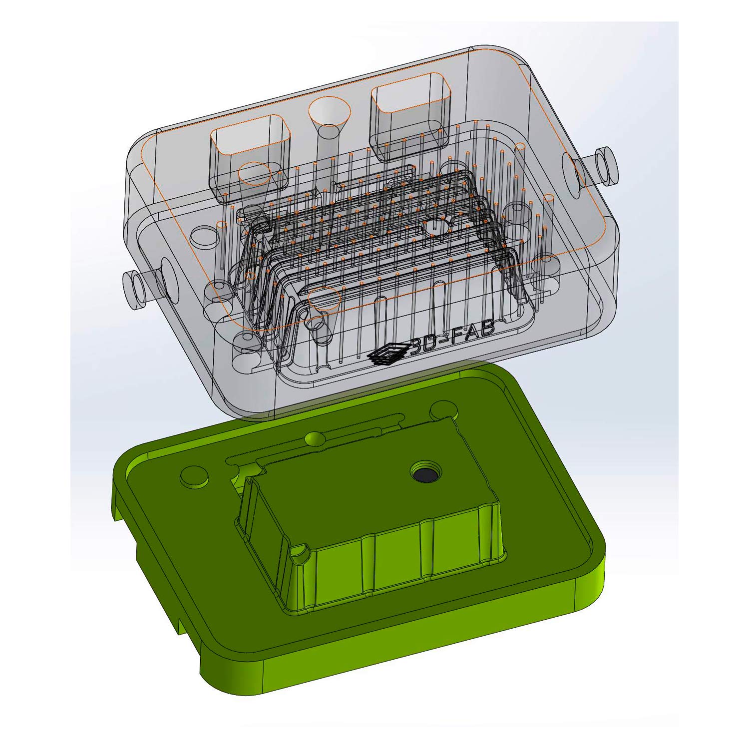 В этом проекте у заказчика было особое требование. Во избежание временных и материальных затрат на дополнительную механическую обработку, он попросил нас изготовить в блоке двигателя с помощью литья масляные каналы охлаждения.